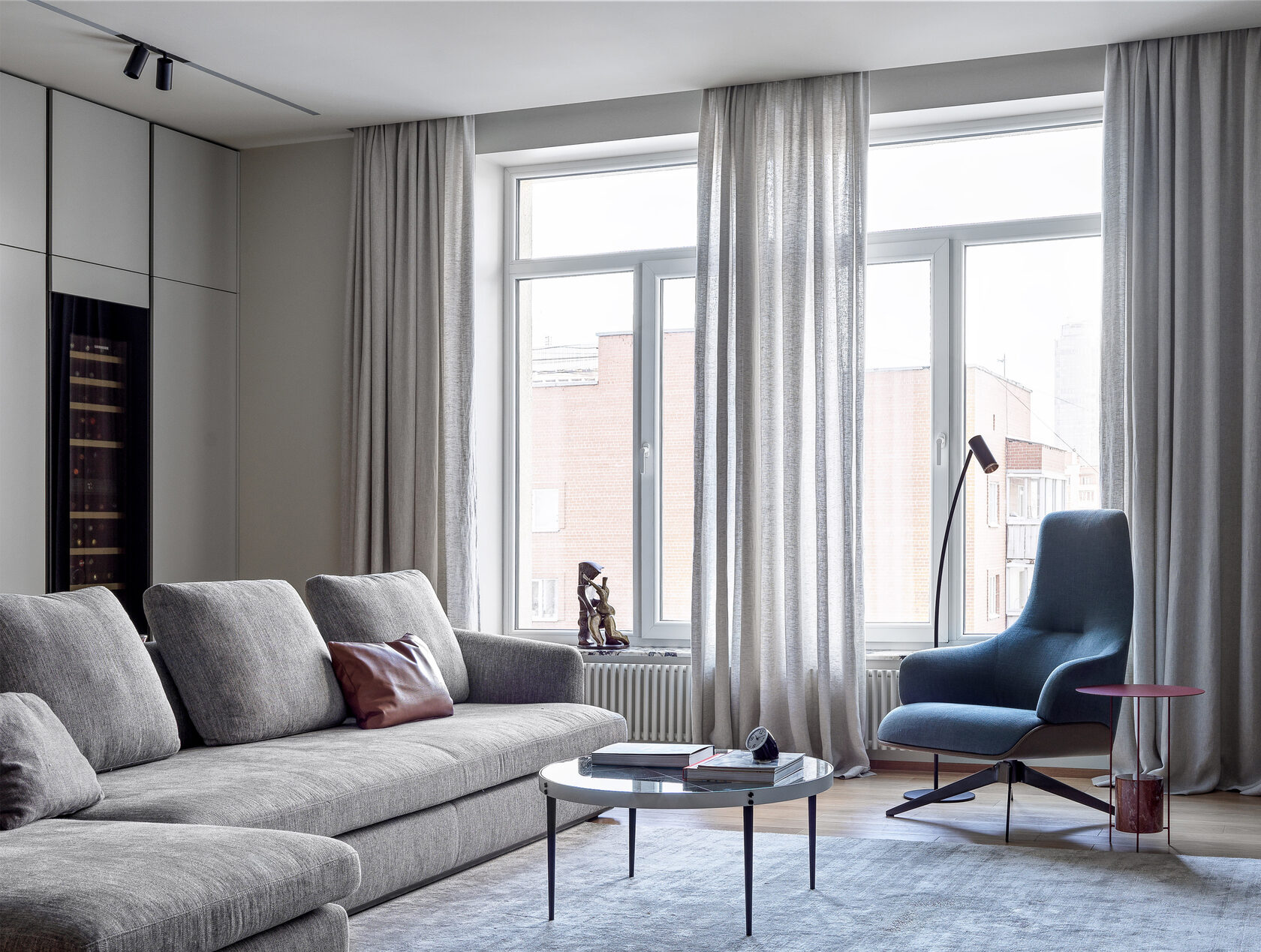 Интерьер городских апартаментов призван стать для своих владельцев местом, где можно отдохнуть от шума мегаполиса. Характер интерьера задан деталями: сложными цветами, фактурами материалов, предметами искусства и мебелью.