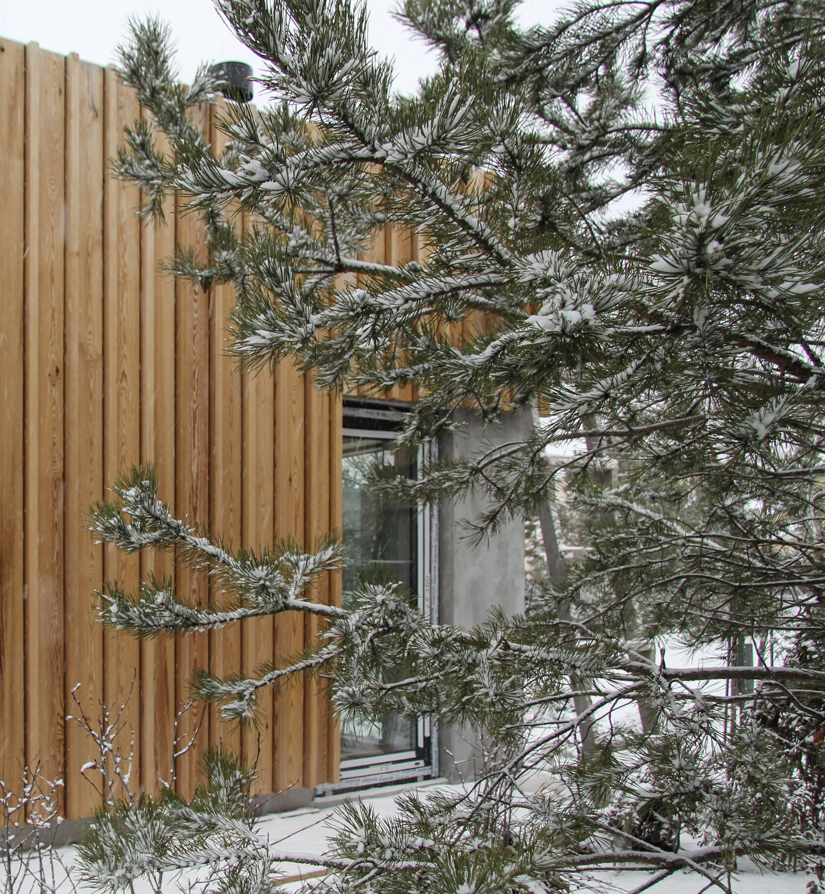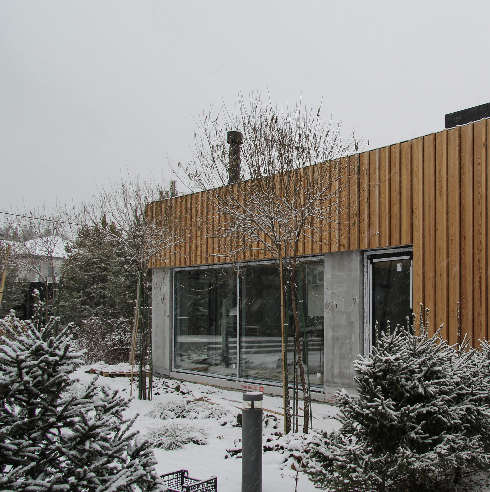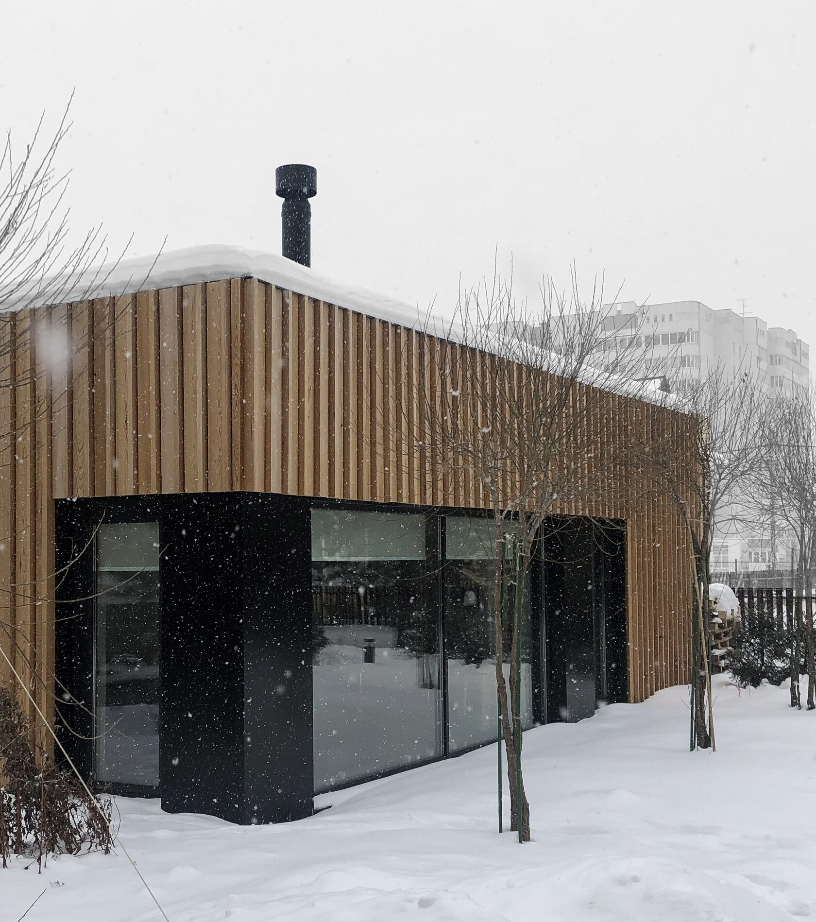 Данный объем был возведен на этапе реконструкции дома DOM_F27 в комплексе проекта по благоустройству внутренней территории. Объем, прямоугольной формы, с трех сторон был обшит ламелями из термодревесины, повторяющей отделку второго уровня жилого дома. Его предназначением служило хранение садового инвентаря для ухода за растениями и уборкой территории, а так же для отдыха садовников.