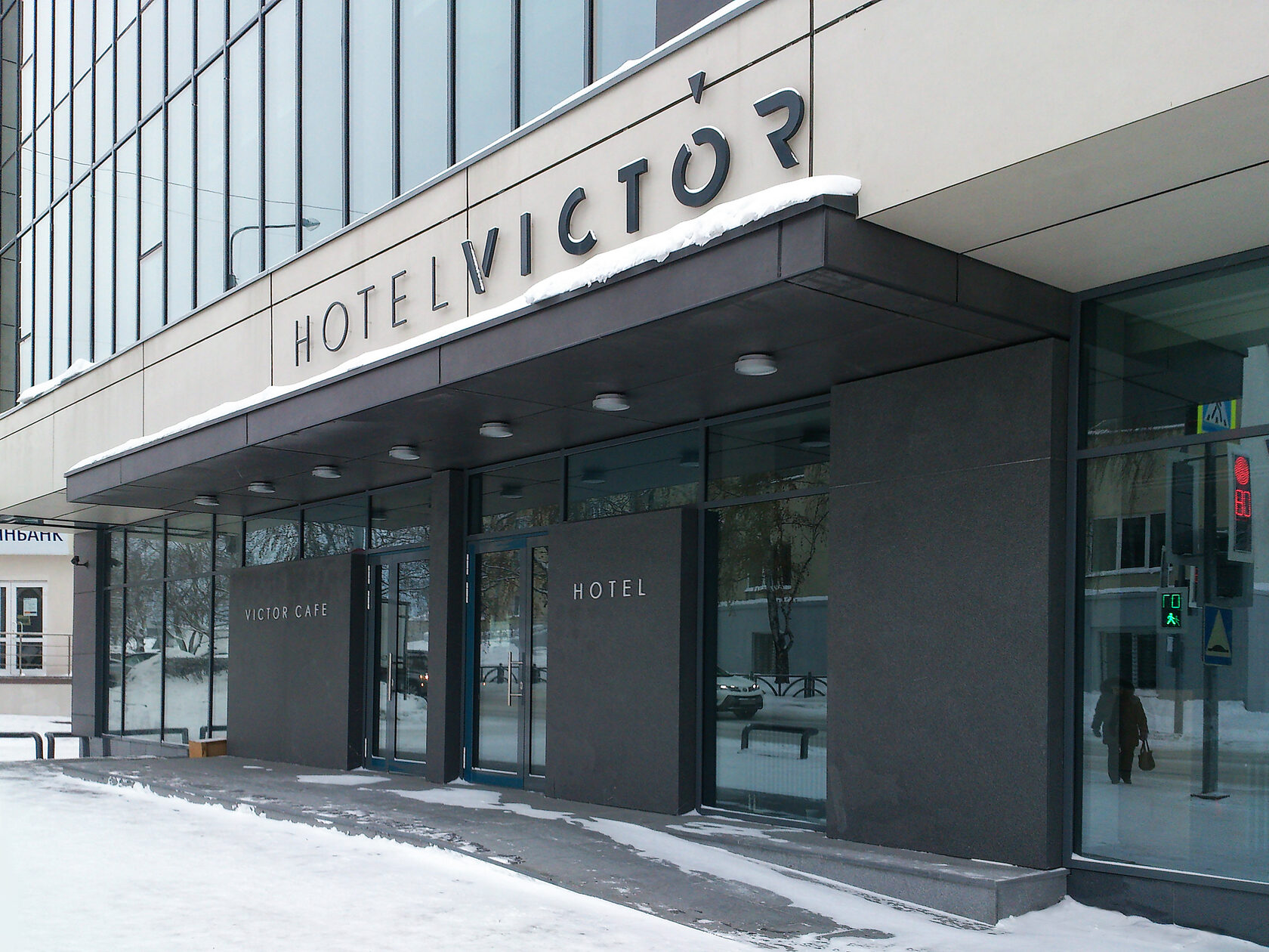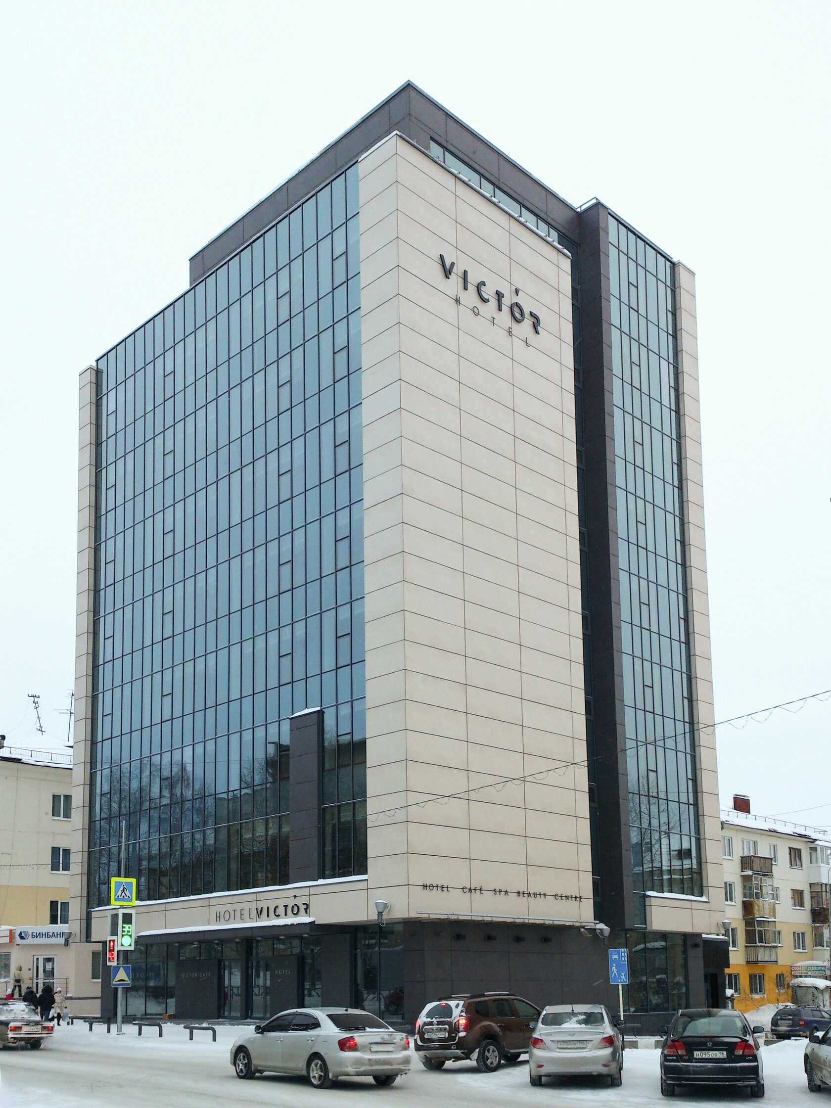 Задача проекта состояла в разработке фасадного решения и дизайн интерьера внутренних помещений существующего бизнес-отеля. Во внешней отделке основного объема, преимущественно был применен светлый вентилируемый фасад со структурной системой крепления керлита и размером пластин 1х3 метра. Аналогичный материал использовался в отделке первого этажа здания, но только в темном цветовом исполнении.